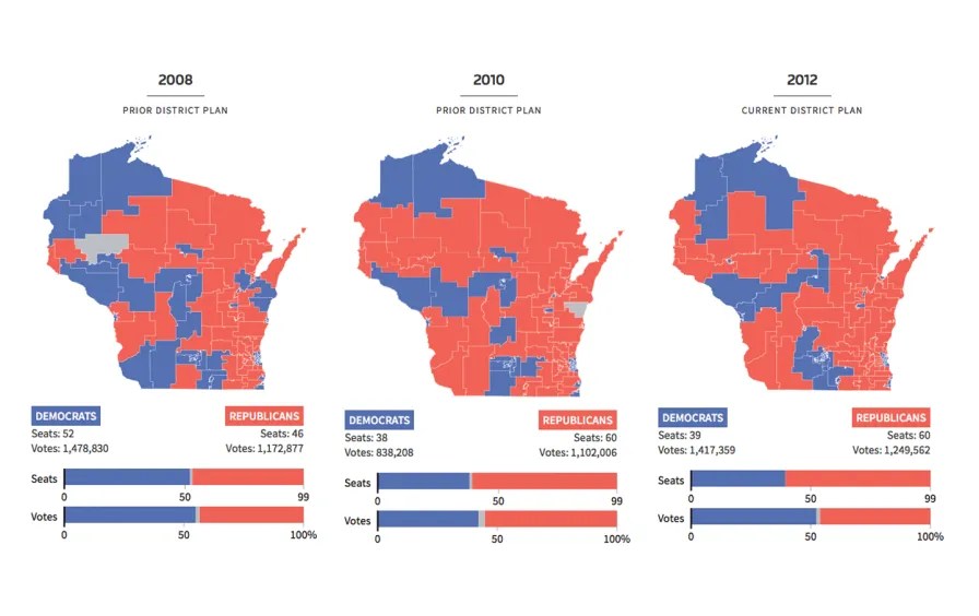 Obviously, there is a complete deadlock, and as a result of that, no winner can be declared. This is why districts are not drawn completely “fairly”, they are almost always drawn with a bias for one political party over the other. If there was a bias for party X when drawing district lines, the distribution would look like this:
